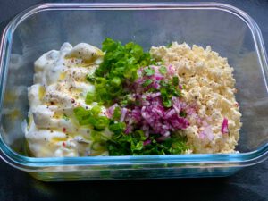 Umrühren, zum Kochen bringen und ca. 20 Minuten köcheln lassen, bis der Reis fertig ist.