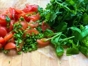 Zwiebel putzen, waschen und kleinschneiden.